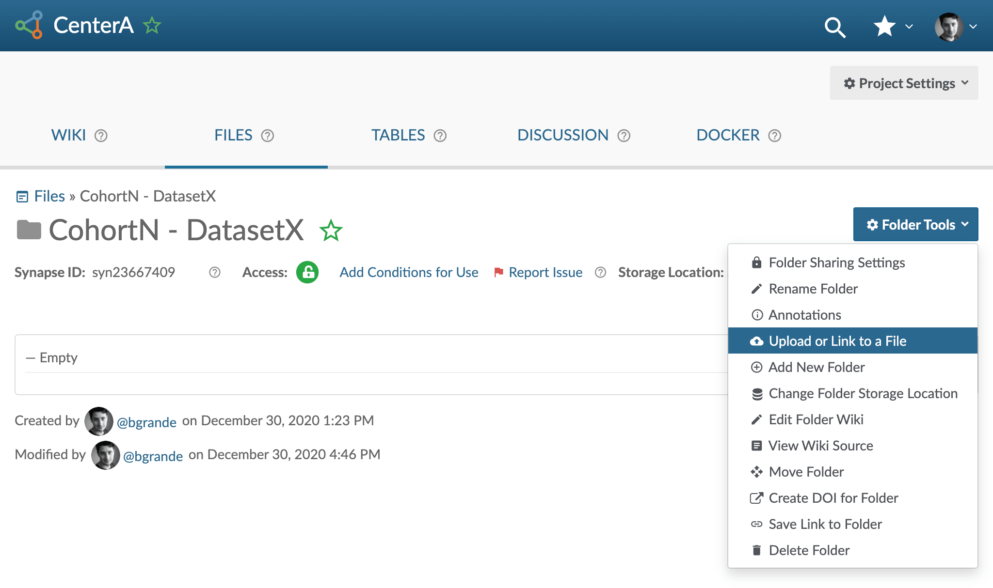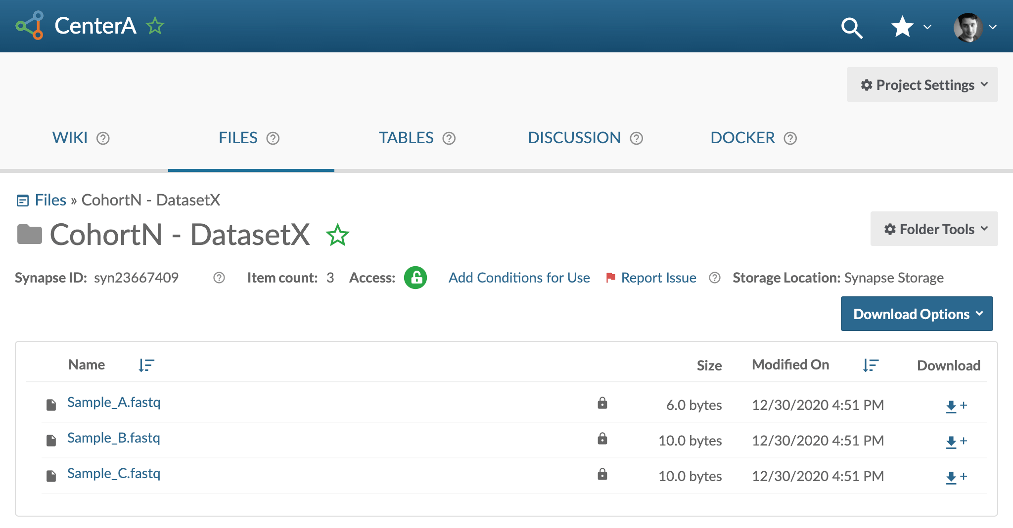 - Navigate to your project, using the Synapse link provided by your DCC liaison