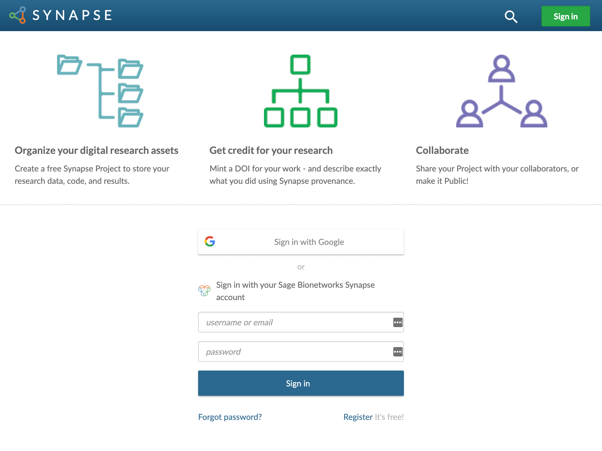 - If prompted, please login with your Synapse account (or an associated Google account).